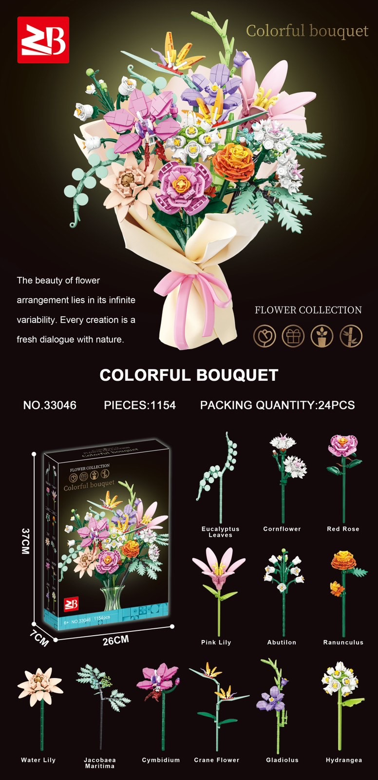KLOCKI KONSTRUKCYJNE KWIATY COLORFUL BOUQUET 1154PCS.