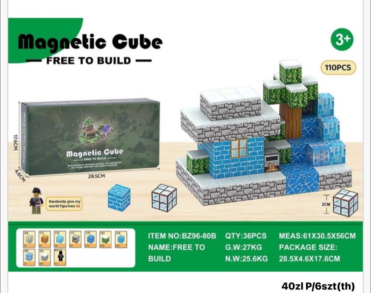 KLOCKI MAGNETYCZNE MINECRAFT 110 ELEMENTÓW.