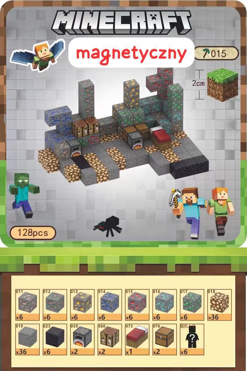 KLOCKI MAGNETYCZNE MINECRAFT 128 ELEMENTÓW.
