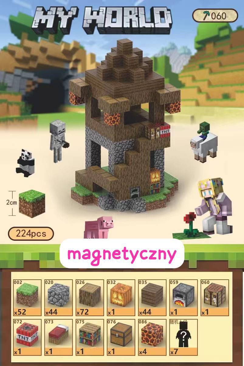 KLOCKI MAGNETYCZNE MINECRAFT 224 ELEMENTÓW.