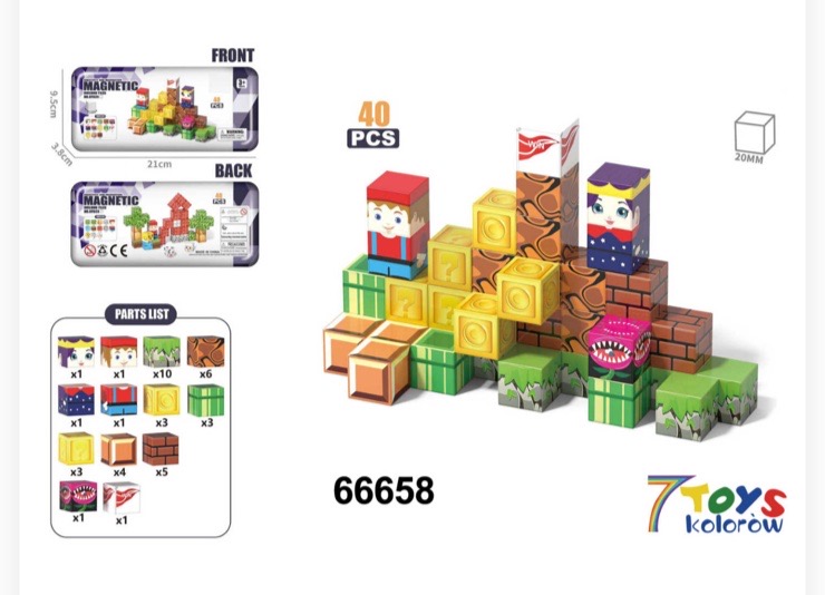 KLOCKI MAGNETYCZNE EDUKACYJNE 40 ELEMENTÓW.
