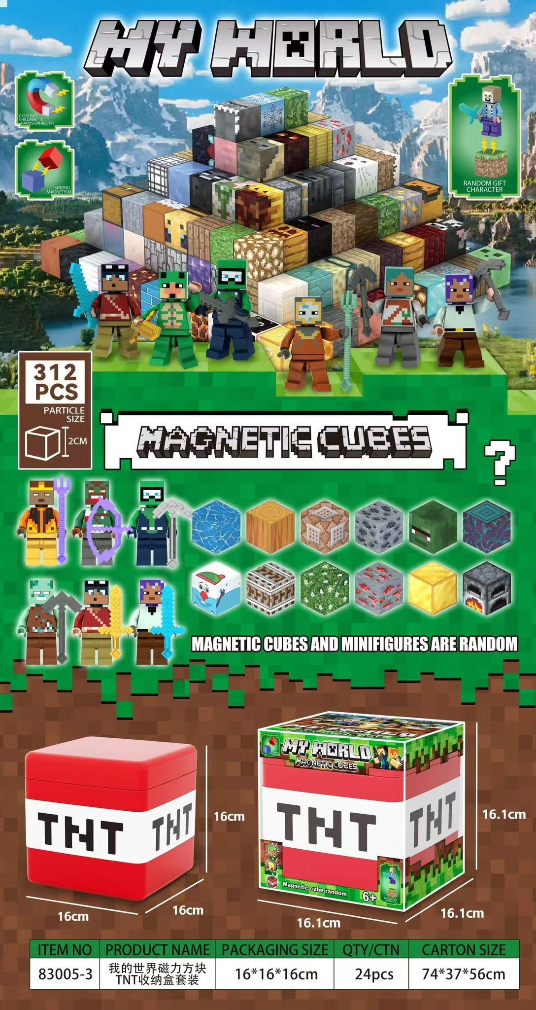 KLOCKI MAGNETYCZNE MYWORLD 312 ELEMENTÓW.