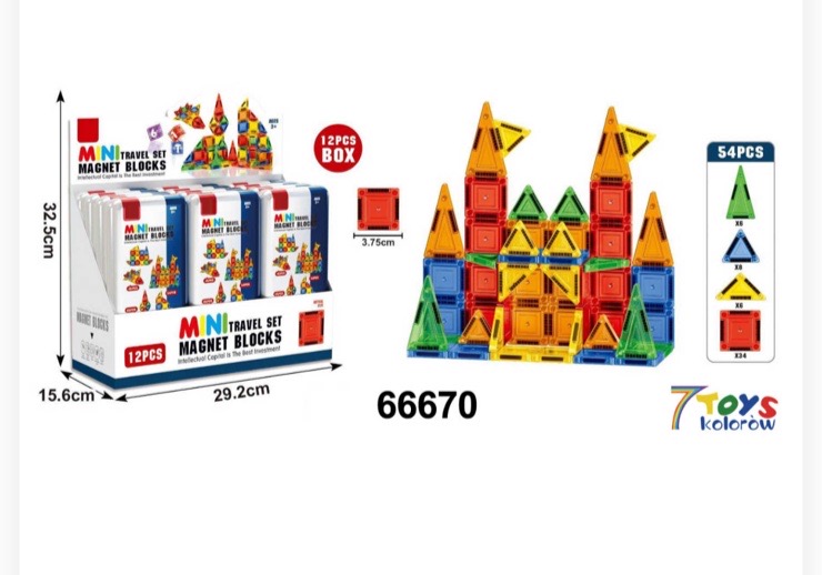 KLOCKI MINI MAGNETYCZNE EDUKACYJNE 54 ELEMENTÓW.