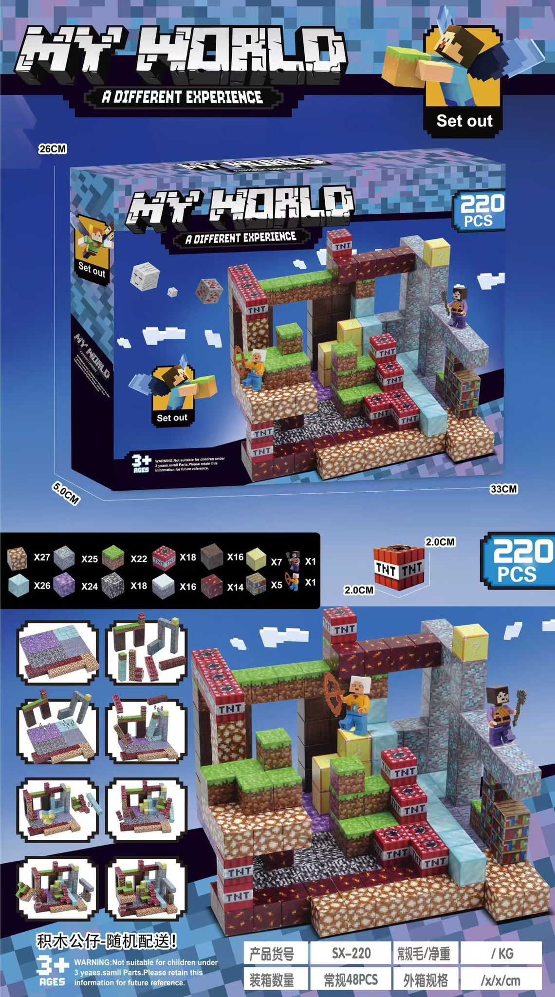 KLOCKI MY WORLD MAGNETYCZNY 220 ELEMENTÓW.