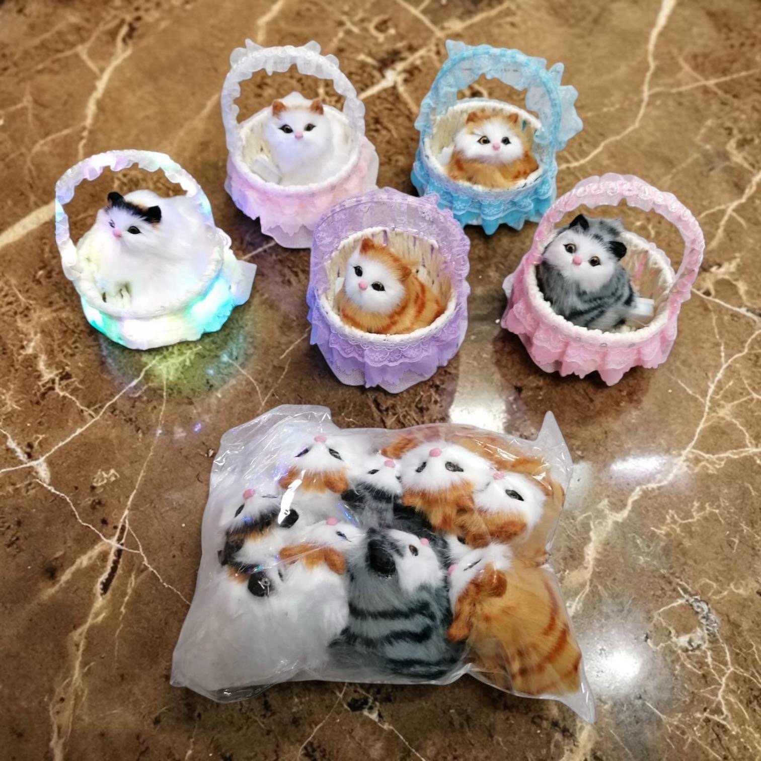 KOTEK W KOSZYKU KOT FUTRZASTY MIAUCZĄCY FIGURKA LED.