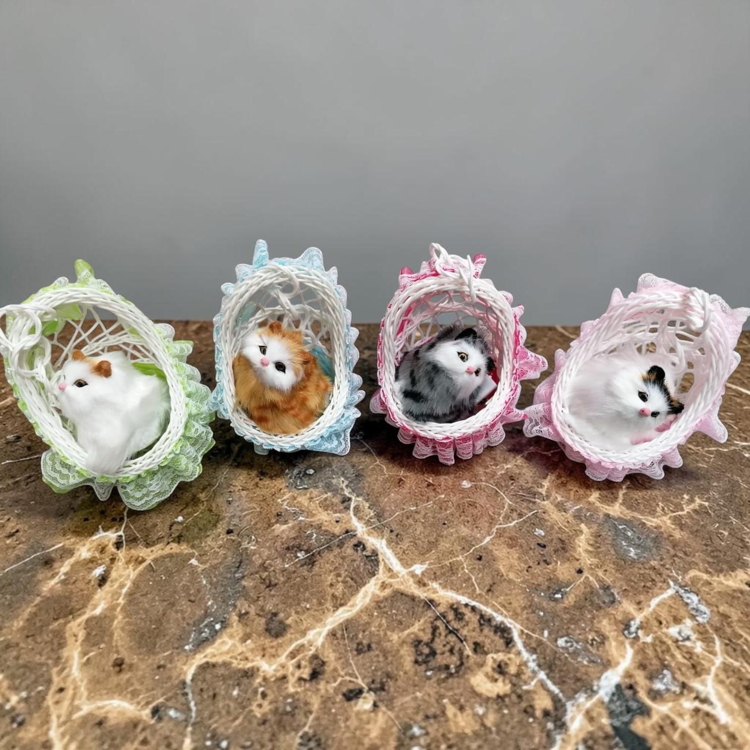 KOTEK W KOSZYKU KOT FUTRZASTY MIAUCZĄCY FIGURKA.