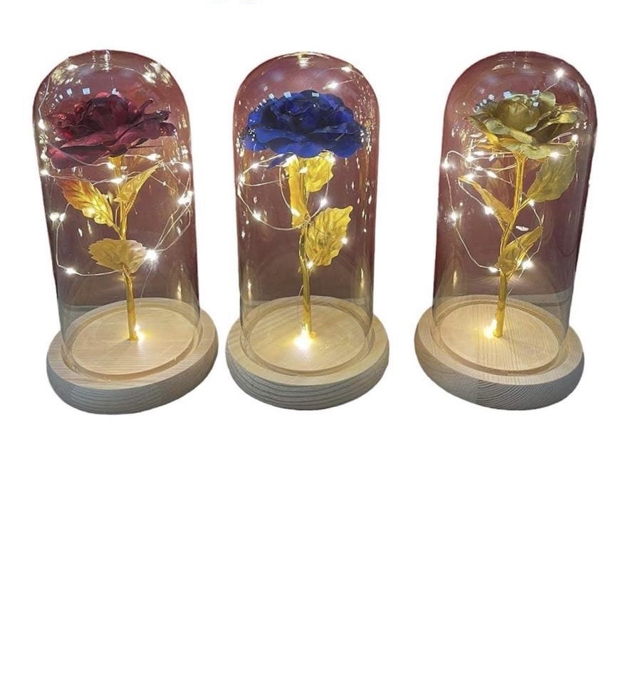 RÓŻA WIECZNA W SZKLE ŚWIECĄCA LED PREZENT.